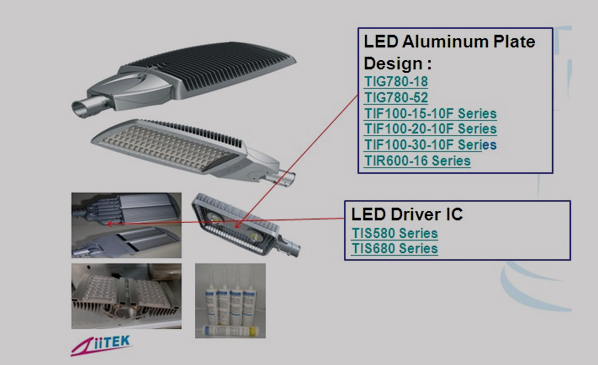 LEDAluminumPlateDesign:TIG780-18、TIG780-52、TIF100-15-10FSeries、TIF100-20-10FSeries、TIF100-30-10FSeries、TIR600-16SeriesLEDDriverIC:TIS580Series、TIS680Series